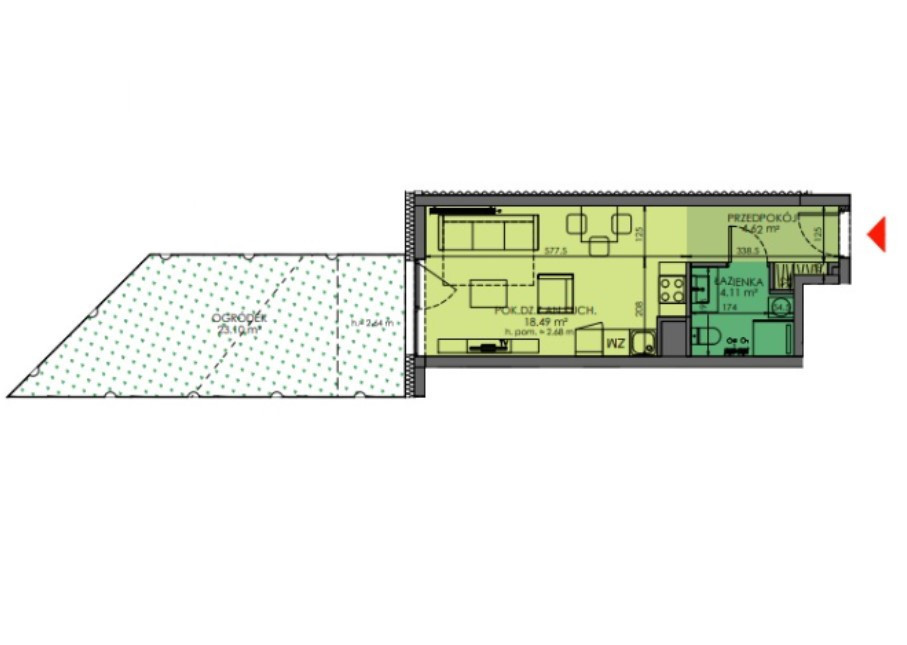 Kawalerka z ładnym ogródkiem w pobliżu ul Grabiszyńskiej we Wrocławiu