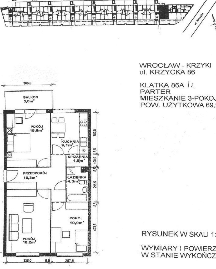Krzycka | 3 pok-69.72m2 | Balkon | Parking (Wrocław, Krzyki, Krzycka)