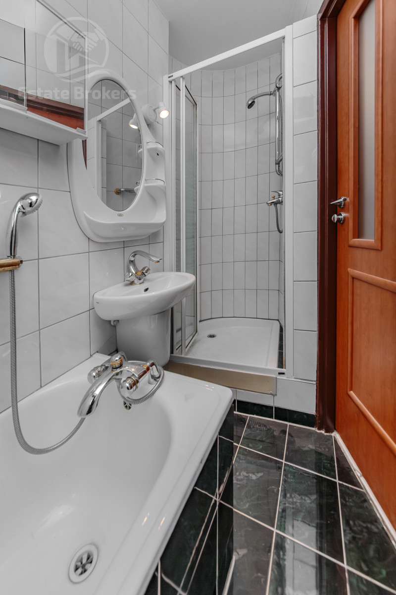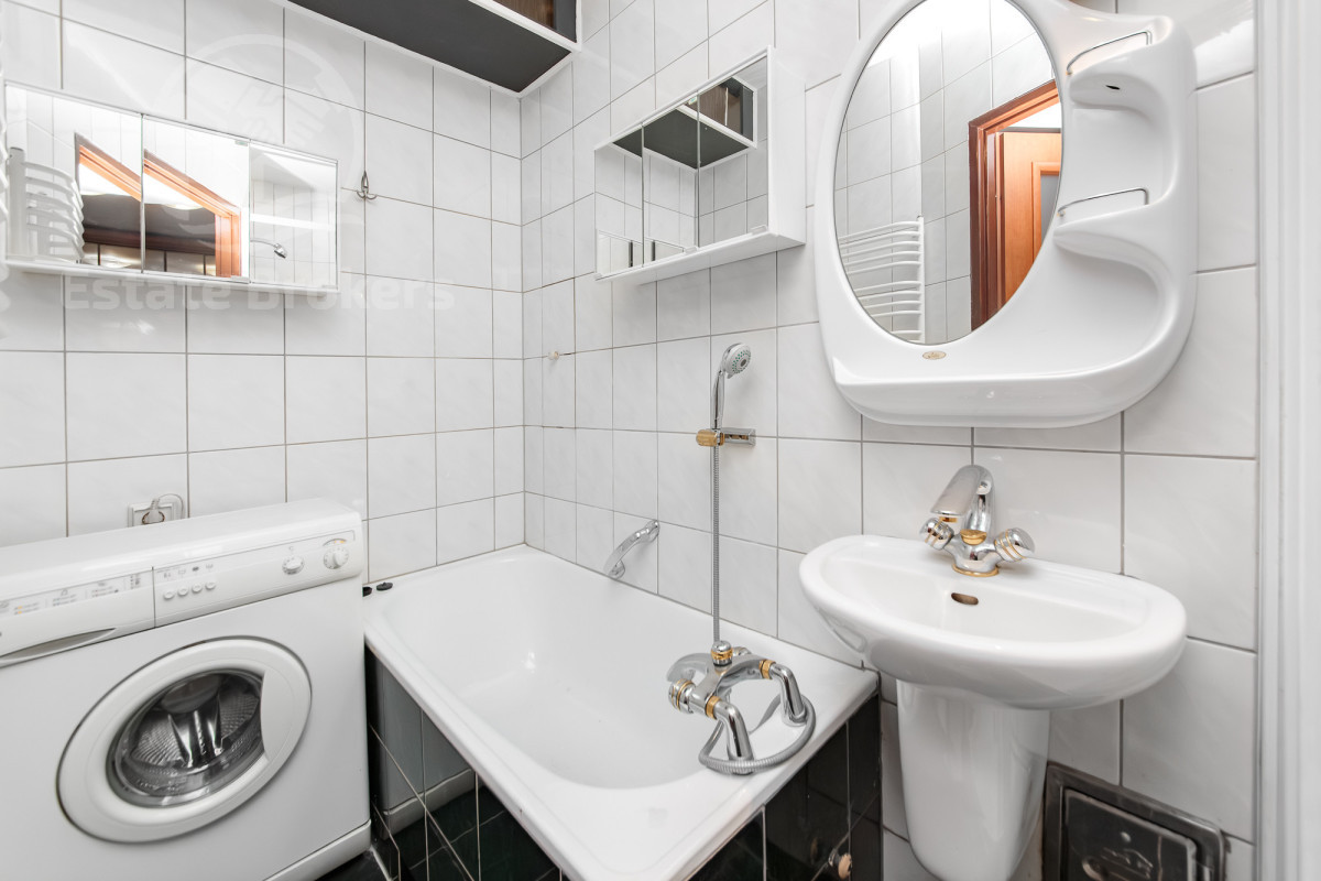 Układ: Pokój dzienny połączony z aneksem kuchennym, przestronny przedpokój z zabudowanymi szafami, łazienka z wanną i prysznicem oraz osobne WC (geberit).