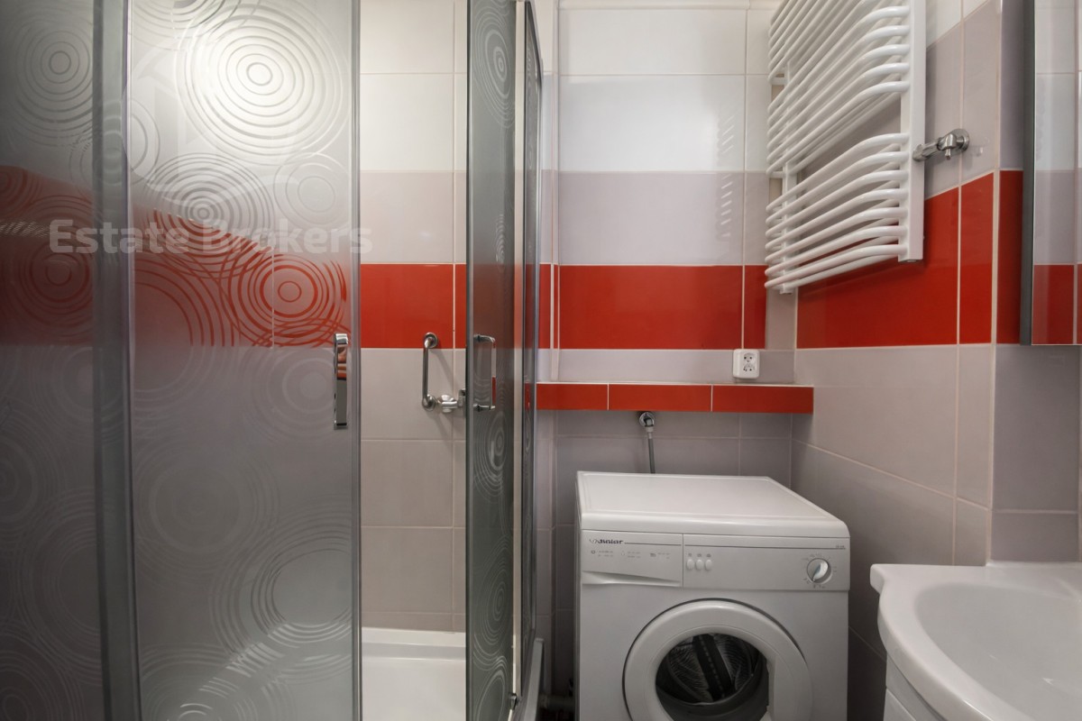W mieszkaniu znajduje się również oddzielna łazienka z prysznicem oraz osobne WC.
