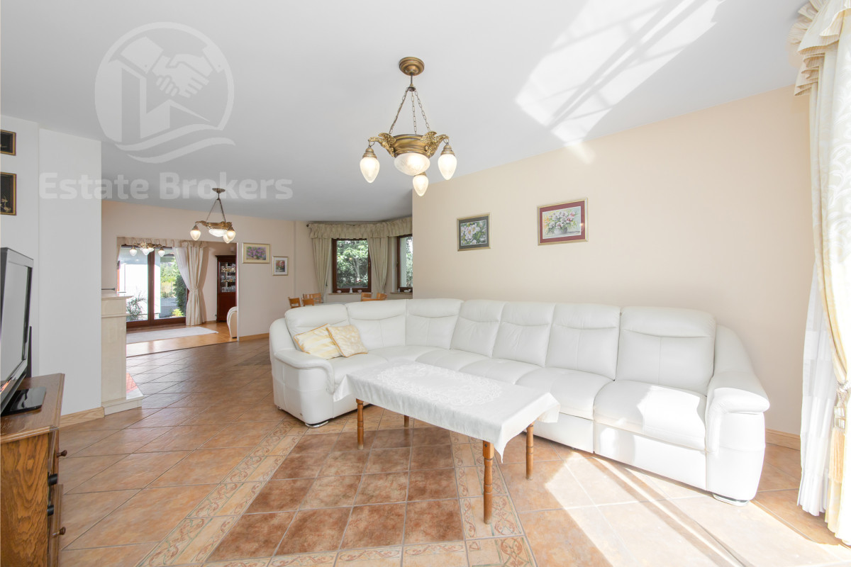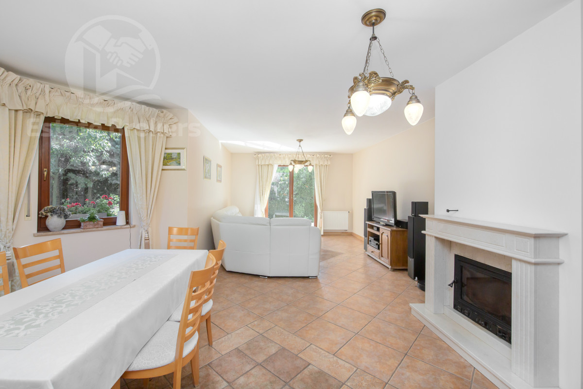 - Wysoka jakość wykończenia: marmurowy kominek, mahoniowe okna, granitowe blaty