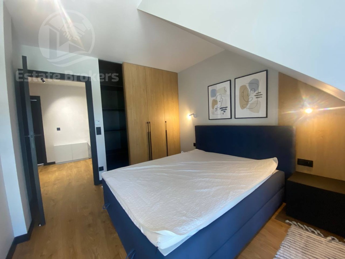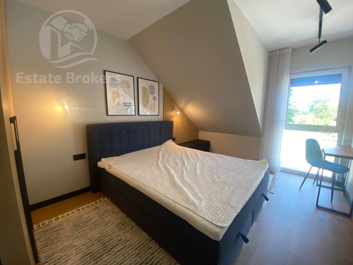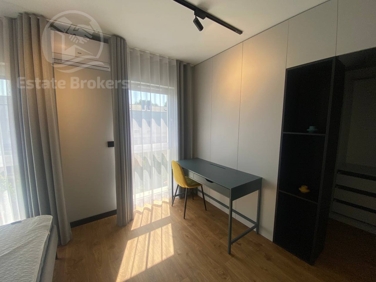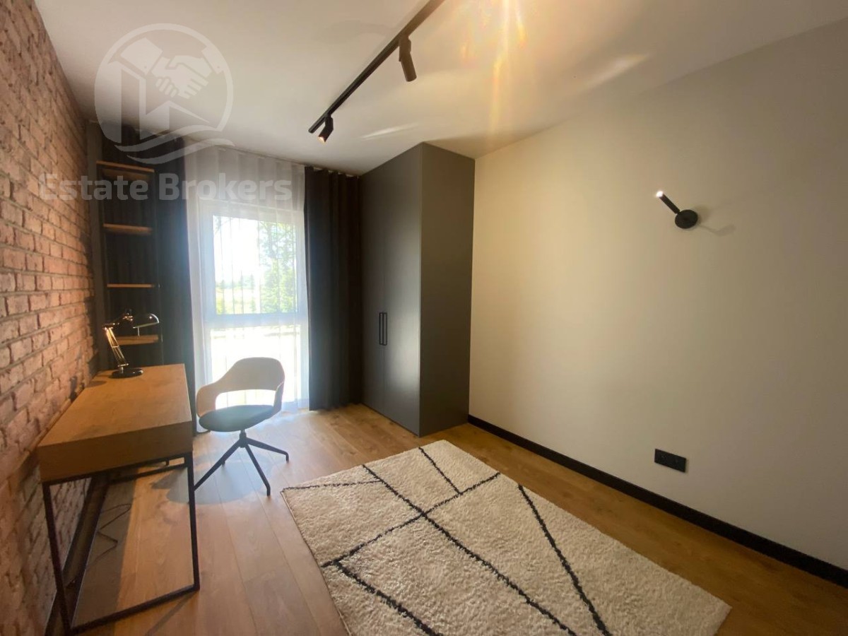 Pełne umeblowanie i sprzęt RTV/AGD Klimatyzacja na parterze i piętrze Ogrzewanie pompą ciepła - niskie koszty utrzymania (ok. 1000 zł/m-c średniorocznie) Szybki internet światłowodowy Zmiękczacz wody Sauna i jacuzzi dla mieszkańców kompleksu Atuty nieruchomości: