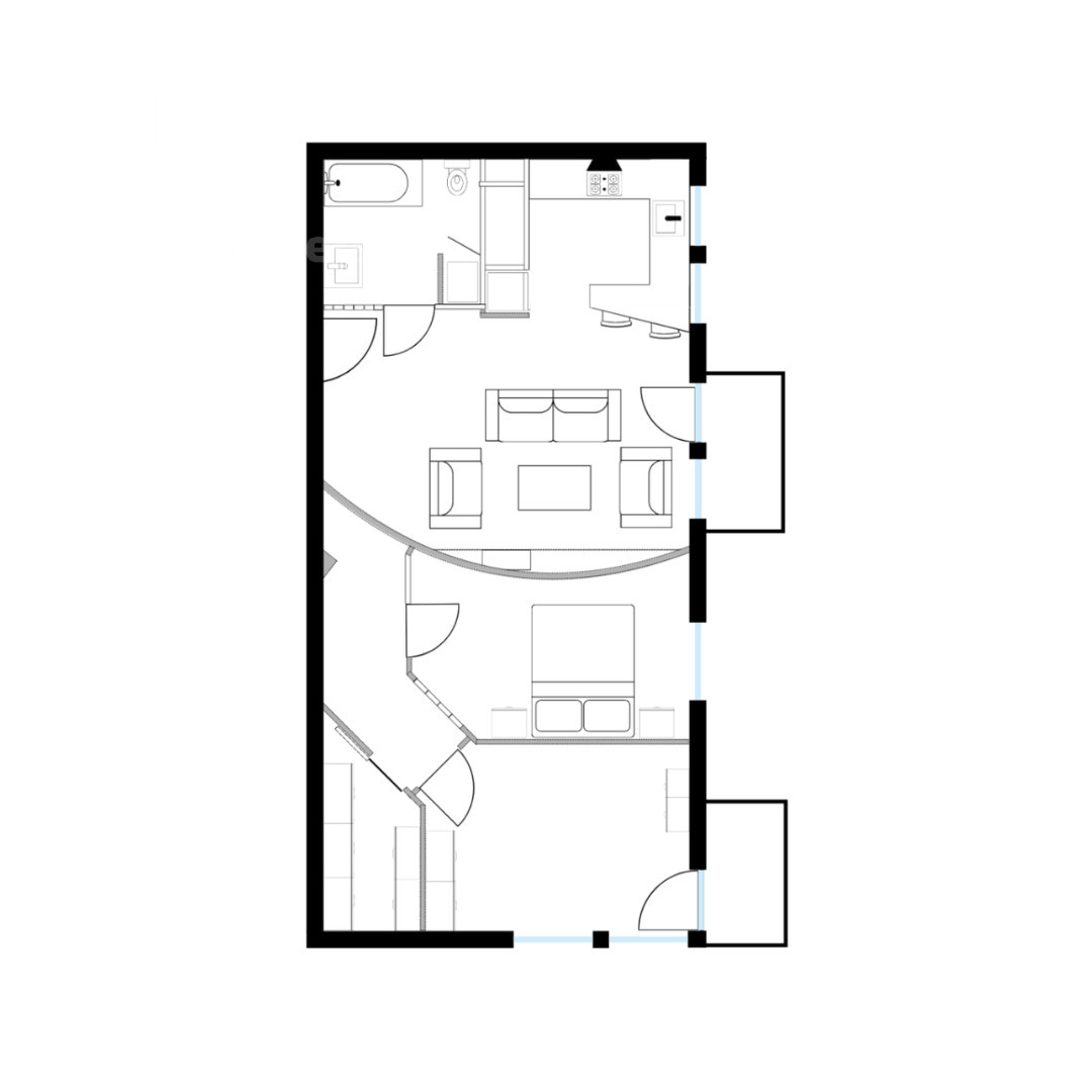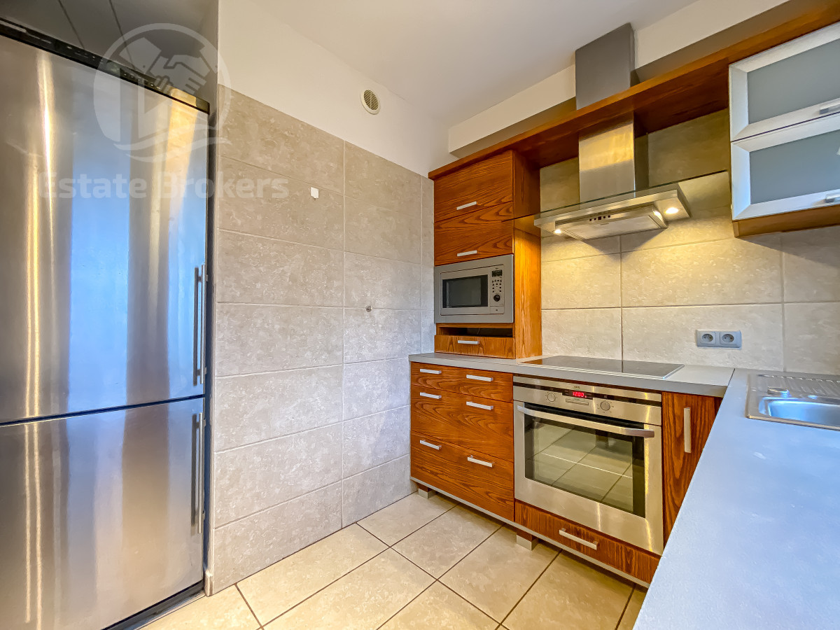 - Jasny salon z aneksem kuchennym oraz wyjściem na balkon
