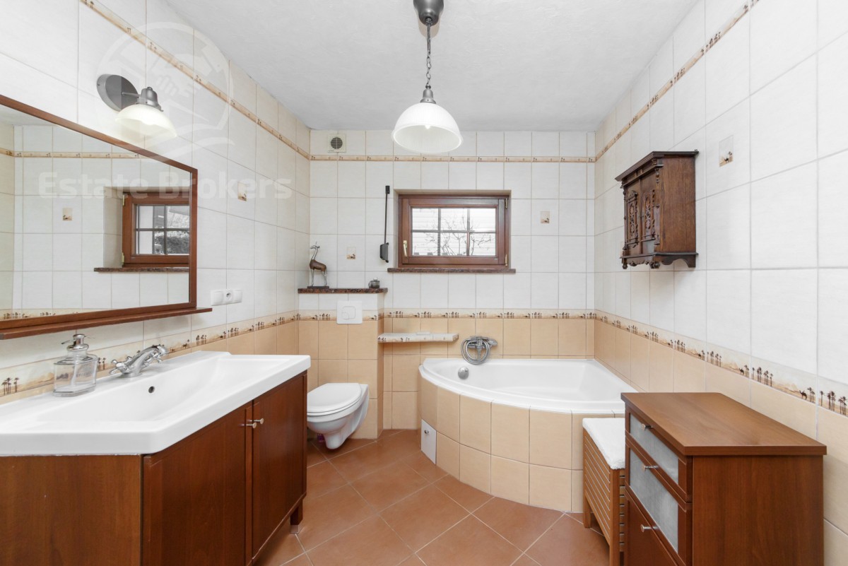 176 m² powierzchni domu, działka 532 m² (faktycznie ok. 860 m²), dom wolnostojący w spokojnej lokalizacji, bezpośrednie sąsiedztwo terenów leśnych, dwa tarasy (w tym jeden bardzo duży), możliwość podziału na dwa mieszkania, możliwość wykonania drugiej kuchni, strych do adaptacji (niewliczony w metraż), garaż + miejsca parkingowe na posesji, dwa źródła ogrzewania (gazowe + piec na opał). Idealna oferta dla rodziny szukającej przestronnego domu w zielonej okolicy lub dla inwestora z myślą o podziale na dwa niezależne lokale.