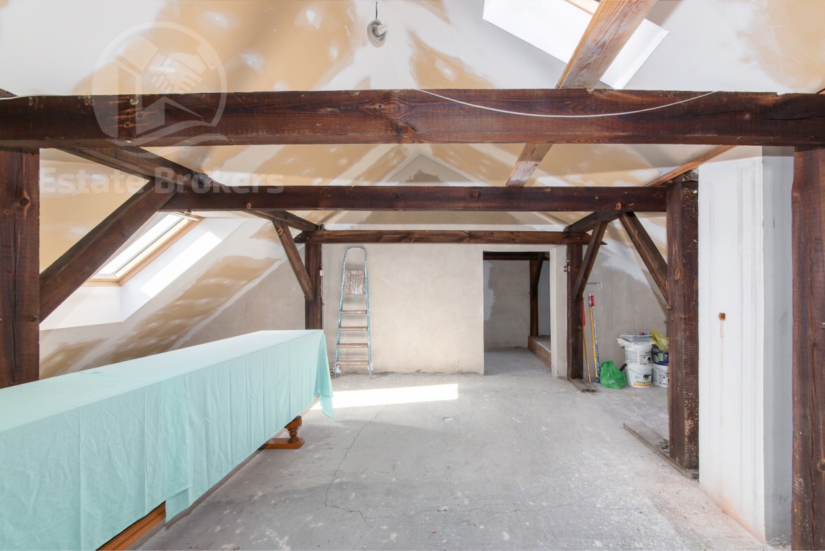 Dom jest w stanie do zamieszkania i oferuje duży potencjał aranżacyjny. Istnieje możliwość podziału nieruchomości na dwa niezależne mieszkania - na drugim piętrze można wykonać dodatkową kuchnię (wszystkie przyłącza są już przygotowane).