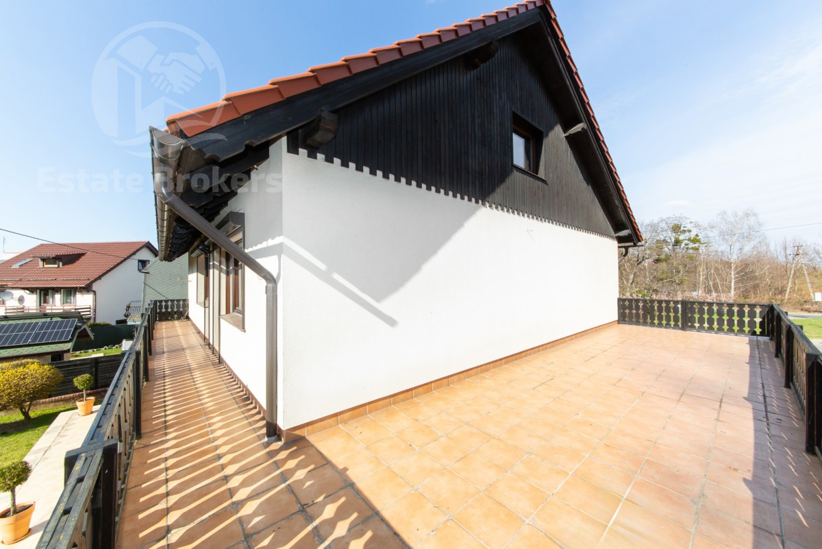 Dużym atutem są dwa tarasy - w tym jeden bardzo przestronny, idealny do wypoczynku. Dodatkowo w domu znajduje się strych (niewliczony w metraż), który można zaadaptować na dodatkową przestrzeń użytkową, np. strefę relaksu lub pokój hobby.