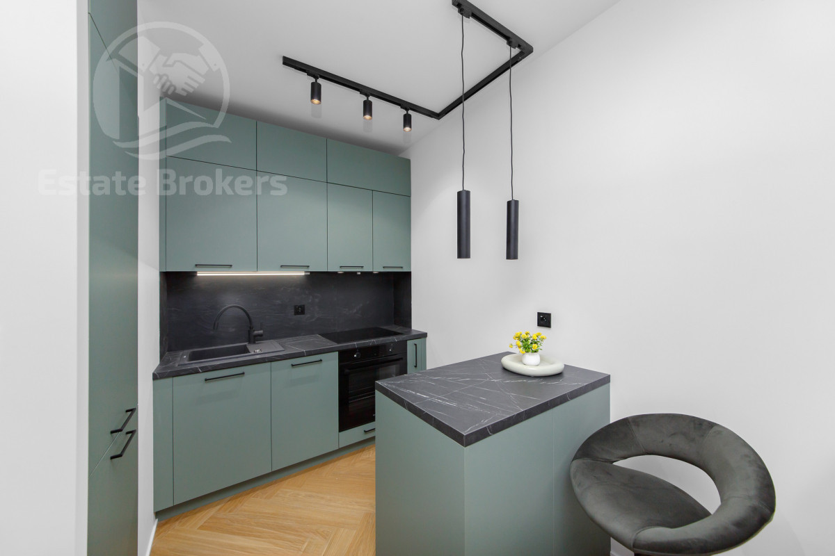 - nowoczesnej kuchni w pełni wyposażonej: zmywarka, lodówka, płyta, piekarnik, okap